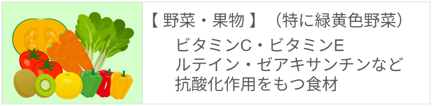 以前は推奨されていましたが、喫煙者におけるβーカロテンの摂取は肺がんのリスクを上昇させることから、現在ではルテインやゼアキサンチンに置き換えられています。