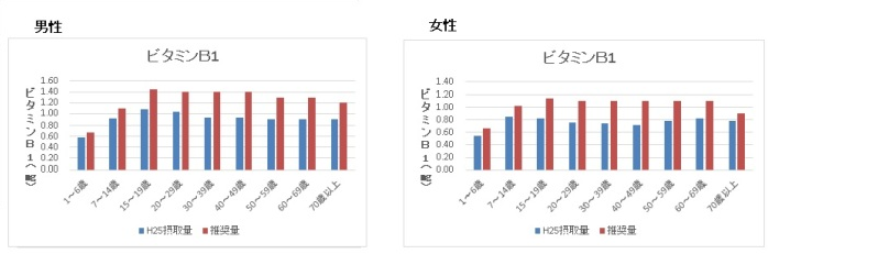 <平成25年ビタミンB1の摂取量と推奨量の比較>