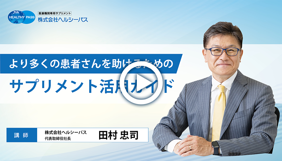 ヘルシーパスでは医療機関でのサプリメント活用について、ご理解いただく目的で医療機関でサプリメントを使う意義を動画で発信しております。